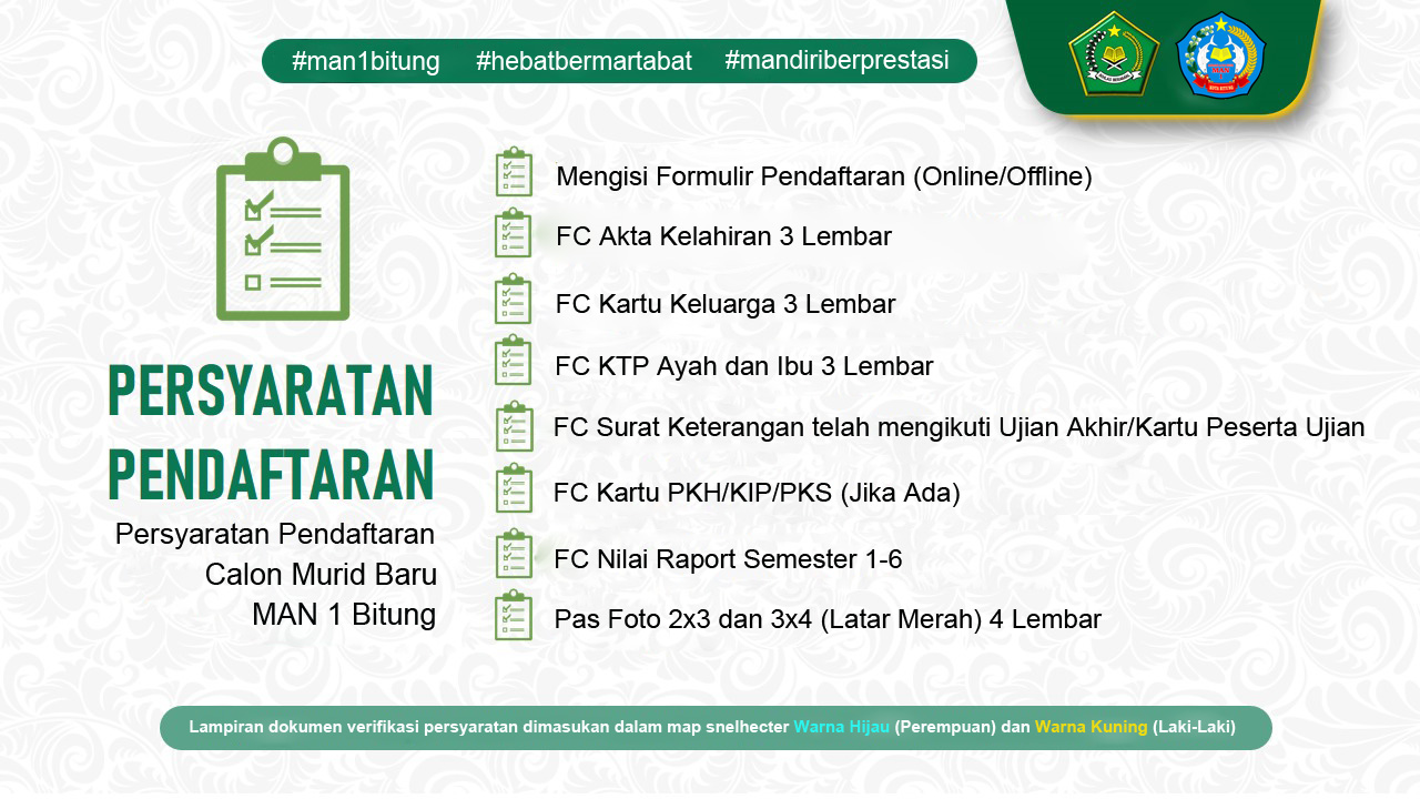 Proses pendaftaran PPDB Online MAN 1 BITUNG hampir selesai. Silakan periksa kembali data-data yang sudah anda masukkan.